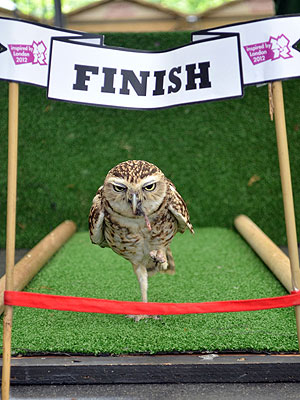 A burrowing owl at the ZSL London Zoo is getting into the Olympic spirit by participating in a 100-centimeter – yes, centimeter – sprint.